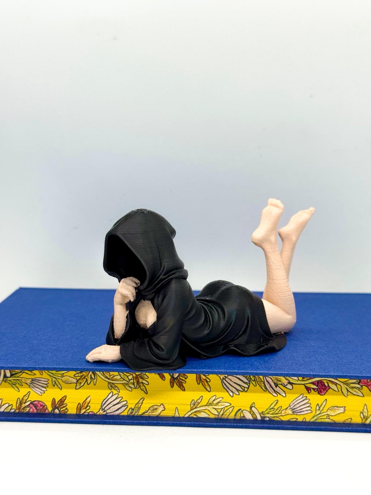 Întinsă pe o parte, cu picioarele ridicate în aer și un aer seducător. O combinație de mister și senzualitate care atrage toate privirile 👀.